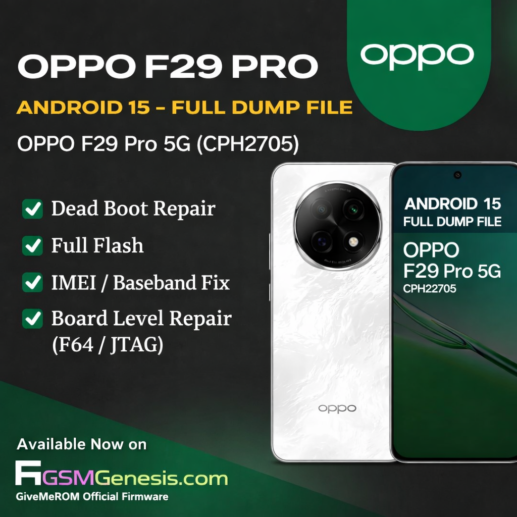 We are excited to announce the official release of the Android 15 Full Dump File for OPPO F29 Pro 5G (Model: CPH2705), now available on the GSMGenesis Store under the GiveMeROM Firmware category.